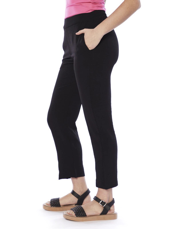 Esta babucha está confeccionada en sastrero ultraliviano, ideal para un estilo sofisticado y cómodo. Su diseño de tiro alto y pierna semi recta aporta un ajuste elegante y moderno. El largo por debajo de los tobillos añade un toque de distinción. La cintura, con elástico en la parte trasera, garantiza un ajuste perfecto, mientras que los bolsillos en la costura delantera ofrecen funcionalidad sin sacrificar el estilo. El ruedo presenta un recorte curvo con una pequeña abertura, añadiendo un detalle chic y distintivo.