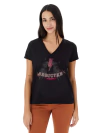 Remera básica confeccionada en jersey de algodón, de calce al cuerpo y largo por encima de la cadera. Presenta escote en V y mangas cortas, ideales para un look fresco y cómodo. La estampa central exclusiva aporta un toque distintivo que eleva esta prenda esencial.