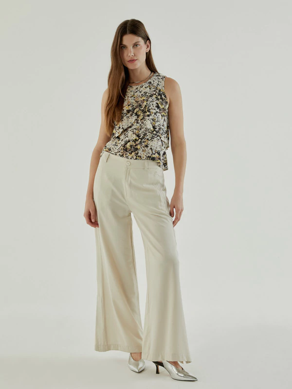 Remera sin mangas confeccionada en tejido liviano de viscosa con elastano, que ofrece suavidad y confort. Presenta una estampa exclusiva que aporta personalidad y estilo único. De escote redondo a la base, calce recto y largo por encima de la cadera, se adapta con naturalidad al cuerpo.