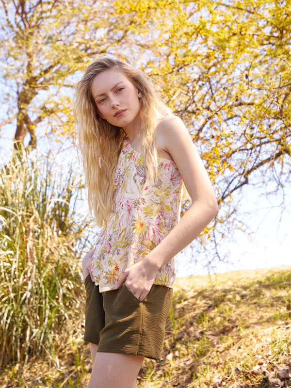 Top de un solo hombro confeccionado en sastrero ultraliviano con estampa exclusiva. Presenta delantera doble con caída diagonal desde el hombro, lo que aporta un efecto drapeado elegante y fluido. Detalle de pequeñas tablas en el hombro que estructuran el diseño. De calce recto y largo por debajo de la cintura, su silueta suelta realza la comodidad y el movimiento.