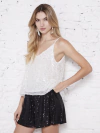Este top de lentejuelas destaca por su estilo llamativo y sofisticado. Con un calce relajado y un largo que llega justo por encima de la cadera, es perfecto para crear un look elegante sin sacrificar la comodidad. Los breteles con elástico afelpado añaden un toque de confort y ajuste, mientras que el escote en V realza el escote de manera sutil. El top está íntegramente forrado, garantizando una caída fluida y una sensación de lujo en la piel.